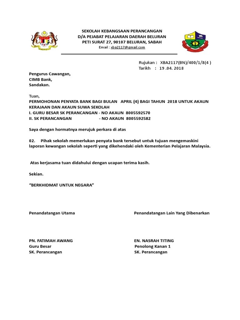 Perkara di atas adalah dirujuk. Contoh surat rasmi permohonan penyata bank cimb surat rasmi t.